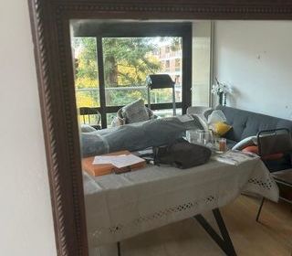 Très beau miroir avec un cadre en bois foncé finement sculpté, au style classique et élégant.?En bon état général, avec un charme authentique qui s'intègre parfaitement dans un int