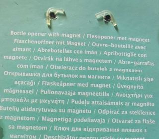 Décapsuleur en forme de bouteille acier inoxydable et décor Summer Time. Neuf. jamais servi. magnets.