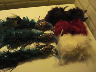 DÉCORATION ANCIENNE DE NOEL POUR SAPIN OISEAU PAN LOT 3 OISEAUX PAN AVEC VRAI PLUMES SUR LA QUE 2 BOULES BLANCHES A PLUMES 2 BOULES ROUGES A PLUMES 2 BOULES VIOETTES 3 OISEAUX PA