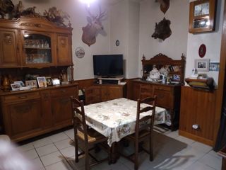 Meubles de salle à manger en bois massif, style rustique, bon état. Buffet 3 portes avec haut + desserte avec glace + table carrée avec 2 rallonges + 6 chaises robustes.