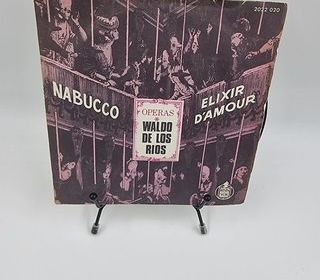 Bonjour, nous mettons en vente ce vinyle 45 tours Nabucco : Elixir d'Amour (Operas ? Waldo de los Rios) vendu dans son fourreau d'origine (Foureau+Disque). État : Bon, testé et fo