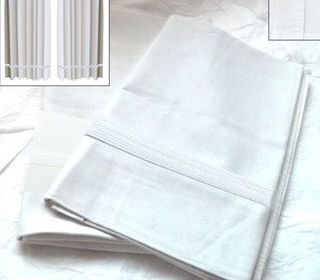 Double rideaux en coton mélangé (opaque), blanc presque gris perle, de 95 cm de large et 145 cm de haut par rideau, soit 190 cm de large au total Fait par un couturier. Bonne ten