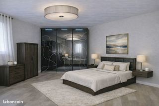 Vends aménagement de placard intégral. Taille : 301 L x 67 p (en cm) Comprenant : 3 portes coulissantes. Taille en cm: 250 H x 100 L chacune + Rails fournis (mécanisme en excelle