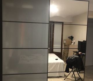 Armoire dressing IKEA porte vitre et gris vitre contour noir 2 m de large 2m35 de haut 3 grands tiroirs + penderie + étagères Armoire luxe avec laid 350 € si départ rapide et a