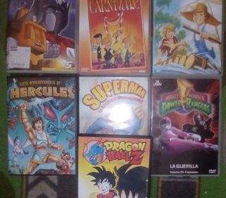superman, tom sawyer, power rangers, dragon ball Z, transformers, les aventures d'hercules, cosmocats 3 (non montré en foto), Tom & Jerry, BABE, teletubbies (chante et danse), le p