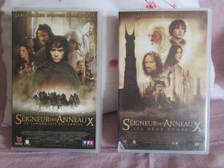 Bonjour, Je vends ces 2 VHS "Le Seigneur des Anneaux" qui sont en très bon état malgré quelques traces d'usures et une déchirure sur la N° 2 (en bas à gauche) et légèrement abîm