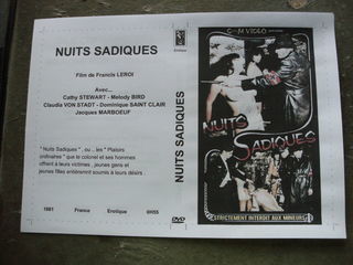 Particulier , cinéphile depuis 45 ans propose nombreux films anciens rares ... parfois introuvables ... Rare film de : Francis Leroi : Nuits sadiques Année : 1981 Avec : C
