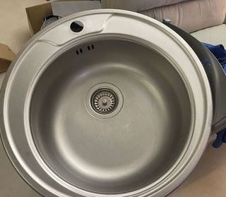 Evier en bon état Diamètre total : 49 cm - diamètre intérieur 37 cm - hauteur 16 cm Diamètre pour robinet : 3,5 cm Disponible de suite