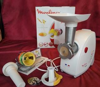 Vends robot moulinex neuf jamais servi , accessoires rà¢pés, tranchés et macédoine, 2 grilles inox, 1400 watts, type ME415 , made in france 110 euros Possibilité d'envoi contre f
