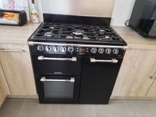 Vends Piano de cuisson Cookmaster LEISURE Noir de 90 cm, une cuisinière au gaz élégante et fonctionnelle, équipée de 5 foyers dont un foyer wok double couronne. Idéal pour les pass