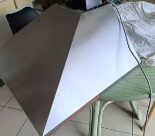 Hotte aspirante NOVY blanche, moderne, en très bon état. Largeur 90 cm. Applique murale. A venir chercher