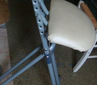 Siége ergonomique pour le repassage,le bricolage etc. réglable en hauteur,siège en simili cuir ,en parfait état. Peut se replier pour un accrochage au mur !