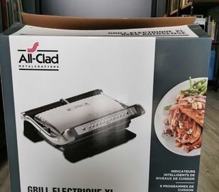 NEUF JAMAIS SERVI Grill électrique XL ALL CLAD avec autosense Indicateurs intelligents des niveaux de cuisson 9 programmes de cuisson 2 plaques de cuisson extra large anti adhés