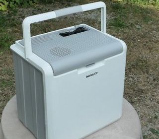 Glacière NORAUTO 30L rigide thermoélectrique, blanc/gris clair, câble 12V de 2m80 pour branchement sur prise allume-cigare (la longueur permet d'aller jusqu'au coffre), câble 220-2
