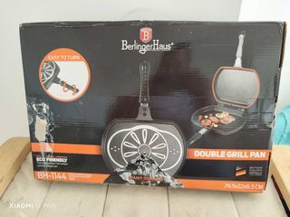 Bonjour, Je vends une double poêle à griller, état neuf dans sa boîte, en fonte aluminium, dimensions 29,5x22x6,5 cms de couleur noire, valable tous feux même induction