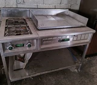 Plancha professionnel avec deux feux à gaz