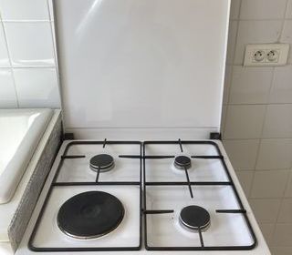 Cuisinière à gaz de ville + 1 plaque électrique,pyrolyse et tourner broche.