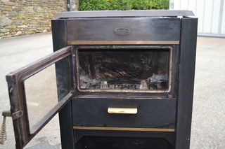 poele a bois deville 10 kw buches de 50 cm - h 96 cm - L 83 - l 40 - poids 100 kg . sortie ar ou dessus . sortie fournie tube de 150 .interieur fonte refait en 2021 . region