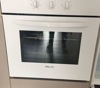 Très beau four encastrable blanc de chez PROLINE Très simple d'utilisation Tournebroche Equipé lèche frite et grille Chaleur tournante Dimensions : - façade 595 mm largeur, h