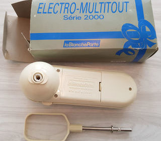 Robot dans sa boîte d'origine, Electro-Multitout Série 2000 fonctionne sur 4 piles R14 ou 1 adaptateur 220 Volts/6 Volts. Moteur 4.5 ? 6 Volts. 2 vitesses, consommation 0.39 A/H. C