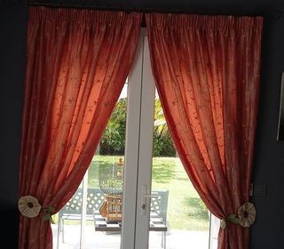 vend rideaux bon état pour porte fenétre deux vantaux (L 2,09mxl1,35m vendu avec tous ses accessoires (supports tringles,embrases 25€ la paire 45€ les 2 paires plus un autre ridea