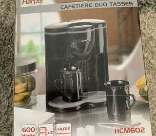 Vends Cafetière duo tasses HCM 602 ? Puissance 600W ? Capacité 250ml ? 2 tasses en céramique ? Filtre permanent ? Support de tasses amovible ? Bouton marche / arrêt ? Cord