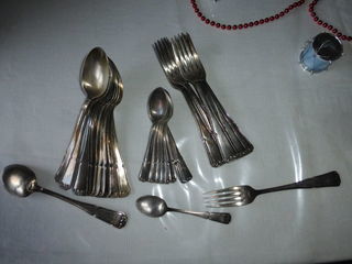 SERVICE DE COUVERTS EN ARGENT : 12 fourchettes 12 grandes cuillères 11 petites cuillères