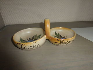 PLAT DE SERVICE OLIVES apéritif ou autres.... avec anse centrale céramique diamètre 11 et 9.3 cm hauteur totale 9 cm neuf