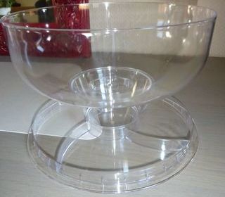PLAT ROND et son COUVERCLE à 4 COMPARTIMENTS plastique transparent qui s'emboîte dessous le plat haut 10.5 cm diamètre 22 cm (pour apéritif ....) NEUFS