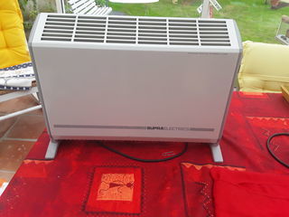 Chauffage d'appoint électrique de marque SOPRA 2 pieds amovibles. Longueur 58 cm, hauteur 42 cm, épaisseur 11 cm. Longueur du cordon 130 cm. Fabrication française :Obernai (67). 2