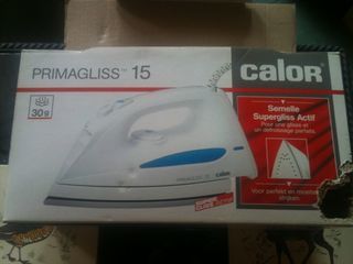 *** Fer à repasser Calor vapeur Primagliss 15 modèle 1470.00 Etat neuf, semelle nickel, a dû servir 3-4 fois, en 1995. 1100 watts, 220-240 V (boîte origine déchirée un coin) 15€