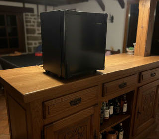 Mini-réfrigérateur compact de couleur noire, idéal pour un bureau, une chambre, un studio, un bar, un espace de coworking ou une salle d'attente. Son format réduit permet de l'inst