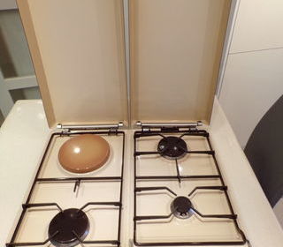 Plaque de cuisson comprenant 3 feux gaz de ville ou bouteilles + 1 plaque éléctrique avec couvercle en bon état. A récupérer sur place. Idéal pour un studio ou camping