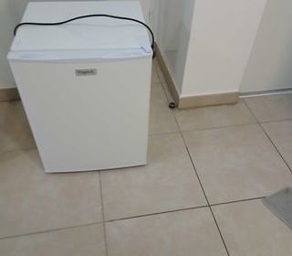 petit Réfrigérateur blanc porte sur le côté droit avec deux étagère en très bon état