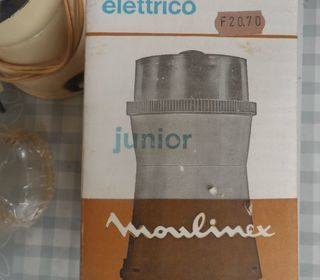Moulin à café Moulinex Junior en parfait état sauf le couvercle qui a été scotché et qu'il faut changer Il est dans sa boite d'origine (en mauvais état) avec ses papiers d'origine