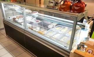 Vends vitrine réfrigérée marque Polo Squared, bon état. Longueur 2,45, largeur 1,20. Rideaux de protection intégrés. Compartiment froid intérieur avec 3 portes. La vitrine est enti