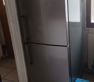 Grand frigo Samsung gris métal en vente pour déménagement. CLASSE A 4 Etagères et 3 bas dans la porte frigo 1 Grand bac à légumes. 3 bacs de congélation ( ils sont un peux cass