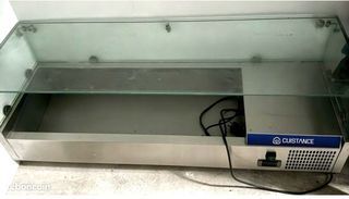 Saladette professionnelle en inox avec vitrine réfrigérée, idéale pour pizzerias, snacks, sandwicheries. 4 Refroidissement statique - Thermostat numérique - Dégivrage auto. Capac