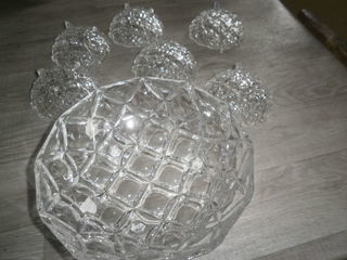 coupe pour salade de fruits et 6 coupelles style faconnes Matere cristal Couleur transparent Sans marque Prix ; 50€uros + frais d'envoi ou enlevement à domicile