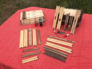 Articles de pêche anciens Photo n°1 : Fils, flotteurs, plombs, hameçons , planches à fil Photo n°2 : Flotteurs, aiguilles, fils, arêtes de plumes Photo n°3 : Fils, flott