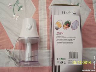 JE VENDS UN MINI HACHOIR MC 343 UNE VITESSE + PULSE COLORI BLANC COMPATIBLE LAVE VAISSELLE POUR UN NETTOYAGE FACILE EN EXCELLENT ETAT PUISQUE NEUF DOUBLE USAGE DANS SA BOITE D'ORIG