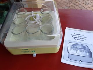 Yaourtière : - Marque SEB - Hauteur : 15 cm - Longueur : 22 cm - Largeur : 22 cm - 7 pots (manque 1 pot) - 6 couvercles (manque 2 couvercles) - Pour 1 litre de lait Pr