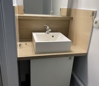 hotte +meuble meubles cuisine,evier inox + robinetterie,plaque cuisson 2 feux,petit frigo,petite ,table murale,meuble salle de bain avec lavabo miroir+robinetterie,seche serviette