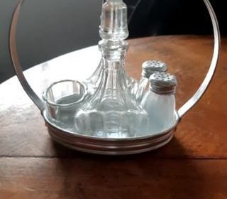 Bonjour, je vend un service de table : huile, vinaigre, poivre, sel, moutarde. Tout est en bon état, pas de fissure. Prix : 8 euro (négociable). Pour plus de photo n'hésitez pas