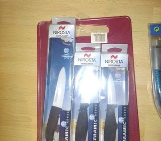 planche a découpé 24 x 33 plus 3 couteau céramique 2 a 17 cm et 1 a 20 cm sous emballage plastique