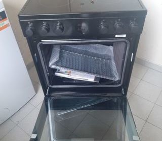 gazinière électrique noire très bon état neuf jamais utilisé plaque a induction mesure 60 cm de largeur et 83 cm de longueur
