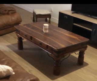 Table basse en bois avec 2 petits tiroirs.