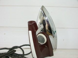 Fer à repasser des années 60/70. Marque AEG, en métal chromé et bakélite rouge bordeaux. Fonctionne parfaitement, très bon état. . Longueur 25cm, Largeur 12cm, Hauteur12cm.