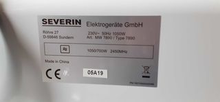 micro-ondes marque Sà‰VERIN, type7890 ,peu servi. 5 niveaux de puissance:400 à 700 w chauffage ou décongélation. Réglages par boutons rotatifs.Ouverture porte par bouton po