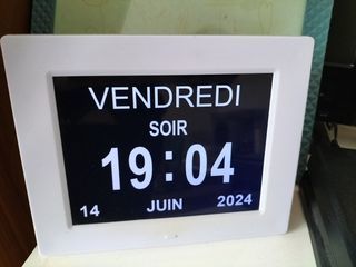 Horloge numérique pour personnes âgées, Alzheimer. Heure, jour/nuit, date. A poser ou à accrocher au mur L 22 x l 17